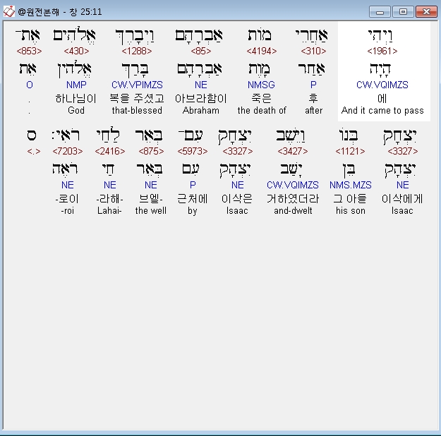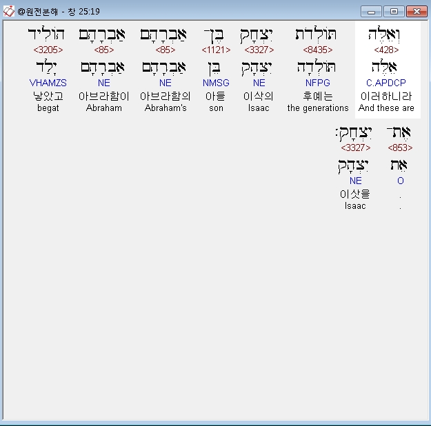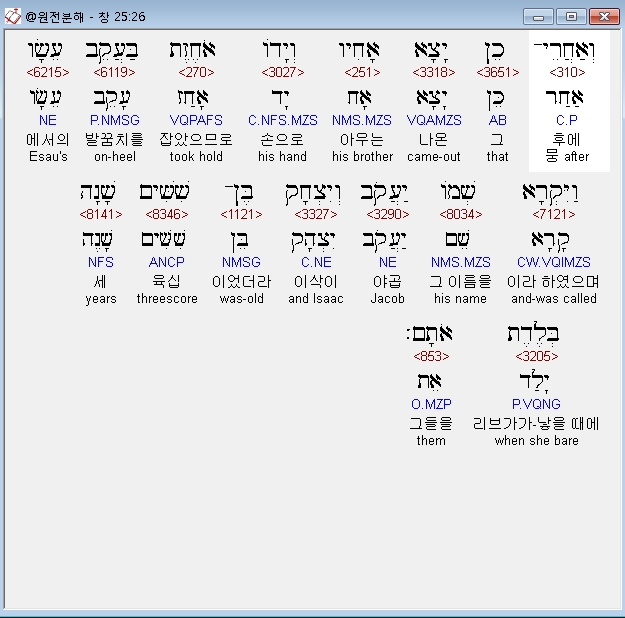 | 히브리어 창세기 26장 전체 원어 원문 성경 공부 주석 강해 설교 해설 해석 (0) | 2020.09.25 |