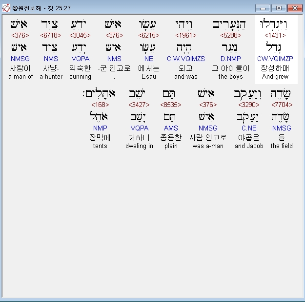 | 히브리어 창세기 27장 전체 원어 원문 성경 공부 주석 강해 설교 해설 해석 (0) | 2020.09.25 |