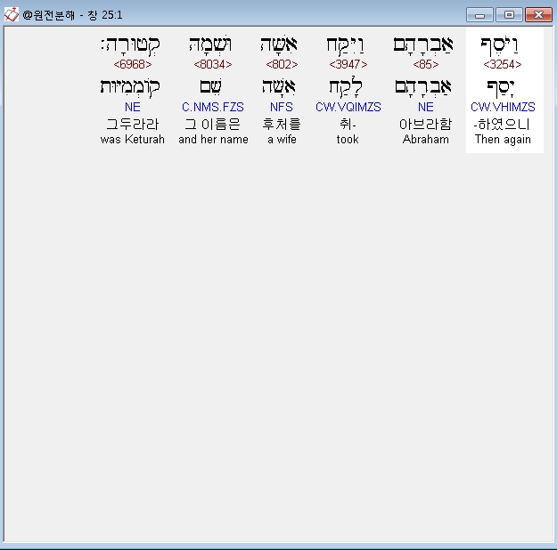 히브리어구약BHS,1 וַיֹּסֶף אַבְרָהָם וַיִּקַּח אִשָּׁה וּשְׁמָהּ קְטוּרָה׃
