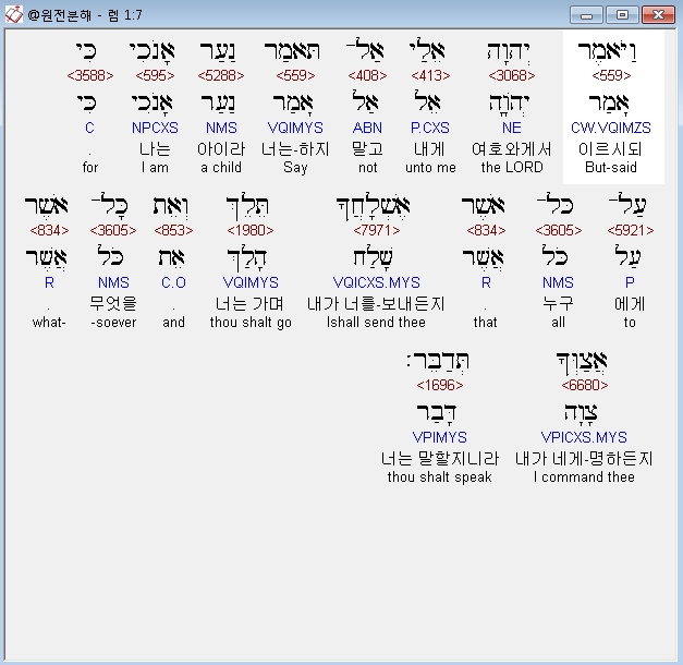 개역개정,7 여호와께서 내게 이르시되 너는 아이라 말하지 말고 내가 너를 누구에게 보내든지 너는 가며 내가 네게 무엇을 명령하든지 너는 말할지니라