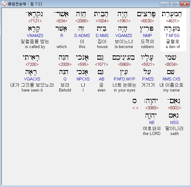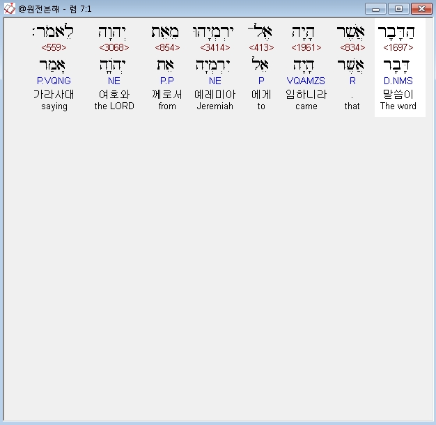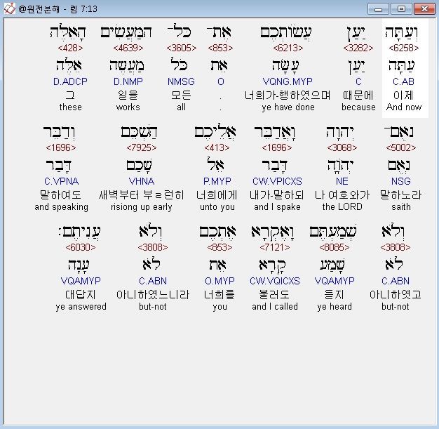 | 히브리어 예레미야 5장 전체 원어 원문 성경 공부 주석 강해 설교 해설 해석 (0) | 2020.10.20 |