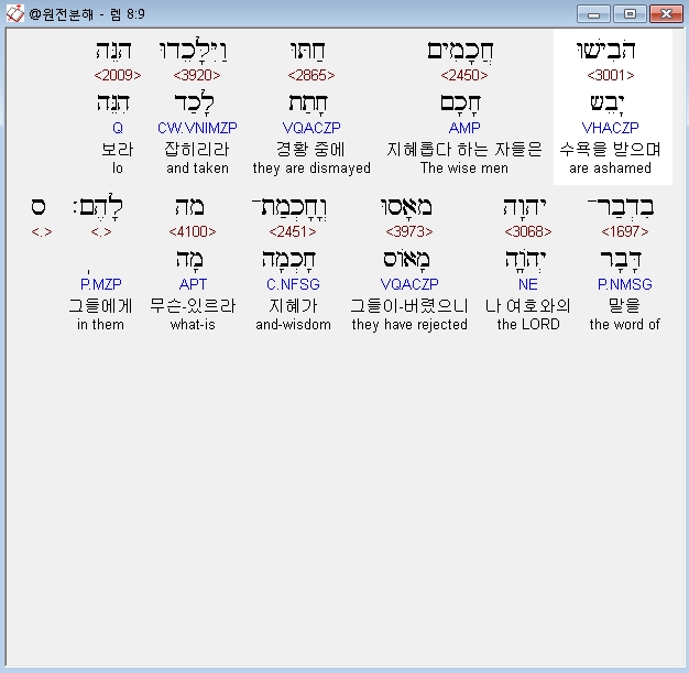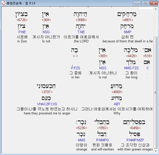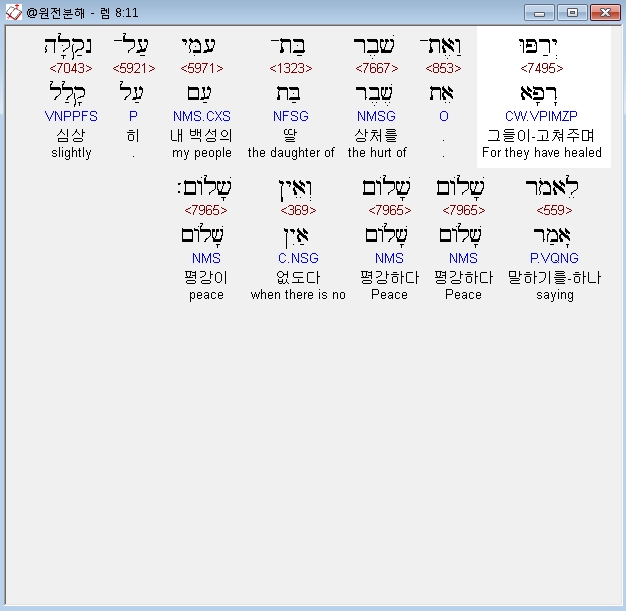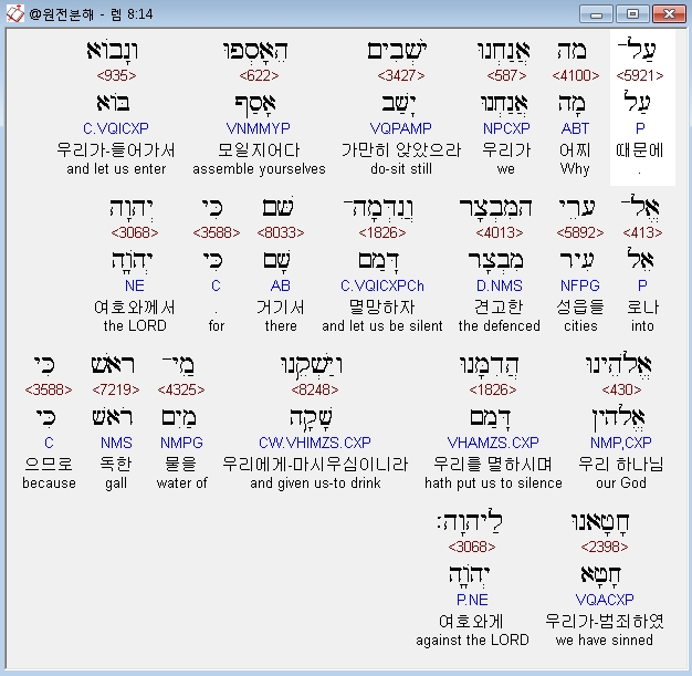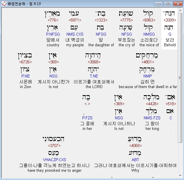 | 히브리어 예레미야 9장 전체 원어 원문 성경 공부 주석 강해 설교 해설 해석 (0) | 2020.10.20 |