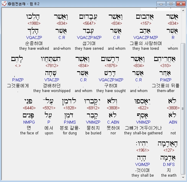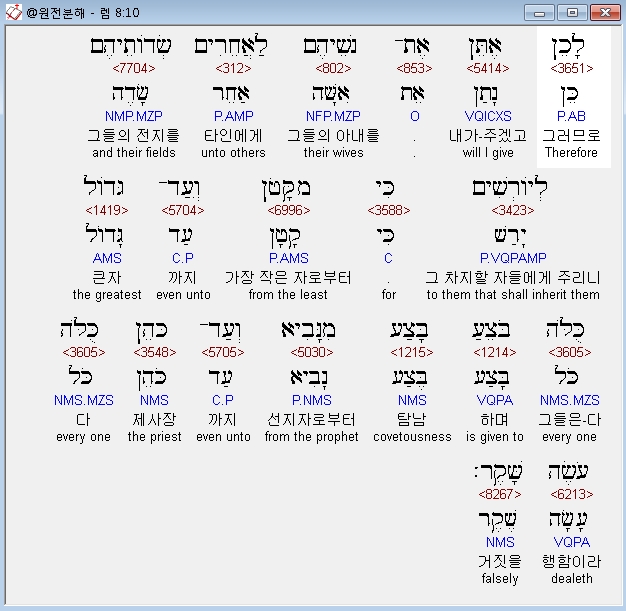 | 히브리어 예레미야 10장 전체 원어 원문 성경 공부 주석 강해 설교 해설 해석 (0) | 2020.10.20 |