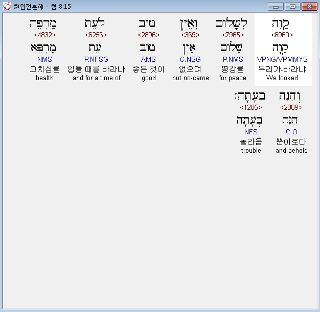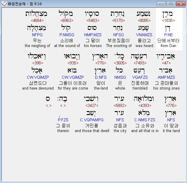 | 히브리어 예레미야 5장 전체 원어 원문 성경 공부 주석 강해 설교 해설 해석 (0) | 2020.10.20 |