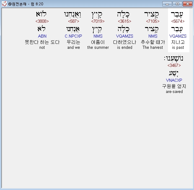 헬라어구약Septuagint,20 διηλθεν θερος παρηλθεν αμητος και ημεις ου διεσωθημεν