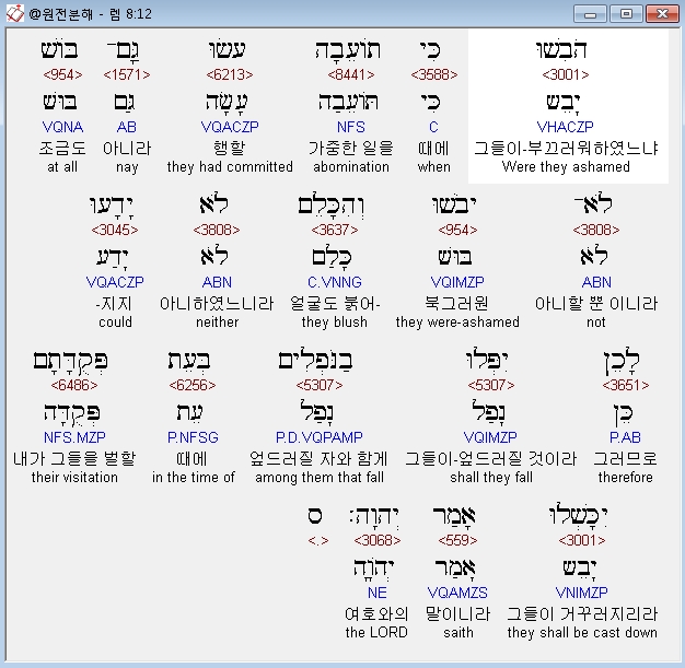 | 히브리어 예레미야 7장 전체 원어 원문 성경 공부 주석 강해 설교 해설 해석 (0) | 2020.10.20 |