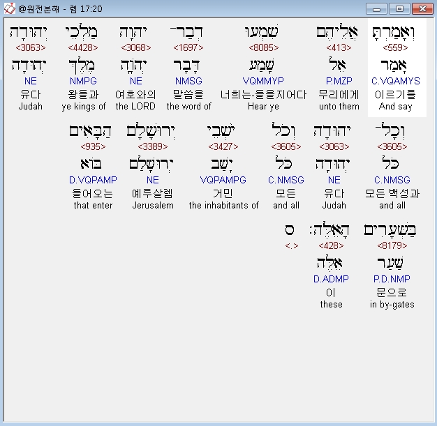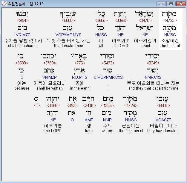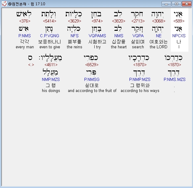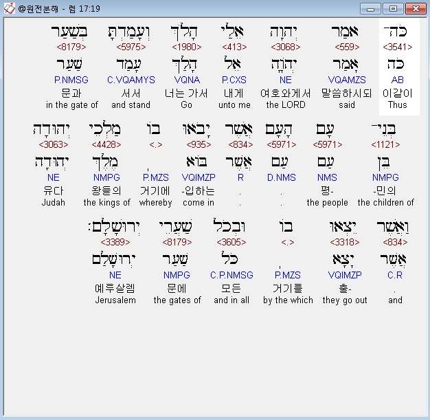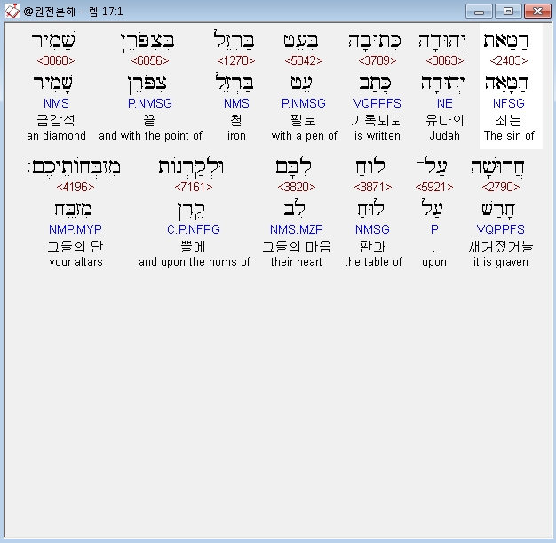 | 히브리어 예레미야 15장 전체 원어 원문 성경 공부 주석 강해 설교 해설 해석 (0) | 2020.10.20 |