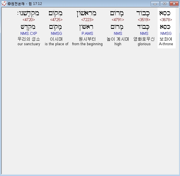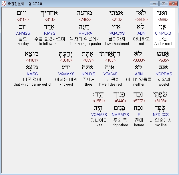 | 히브리어 예레미야 16장 전체 원어 원문 성경 공부 주석 강해 설교 해설 해석 (0) | 2020.10.20 |