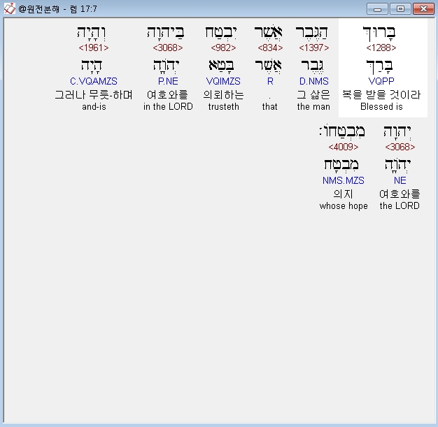 히브리어구약BHS,7 בָּרוּךְ הַגֶּבֶר אֲשֶׁר יִבְטַח בַּיהוָה וְהָיָה יְהוָה מִבְטַחֹו׃