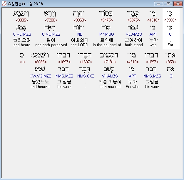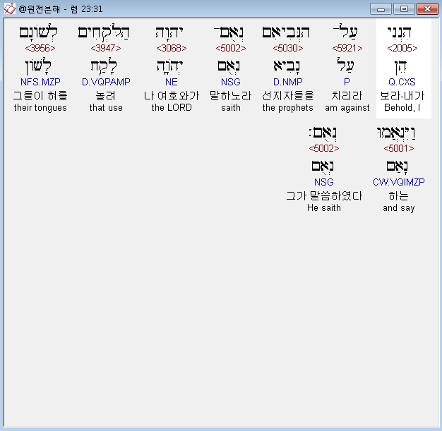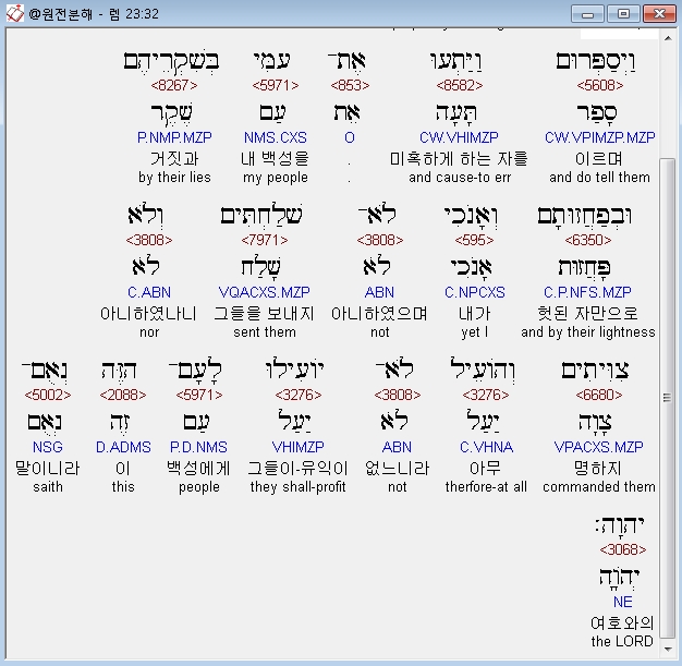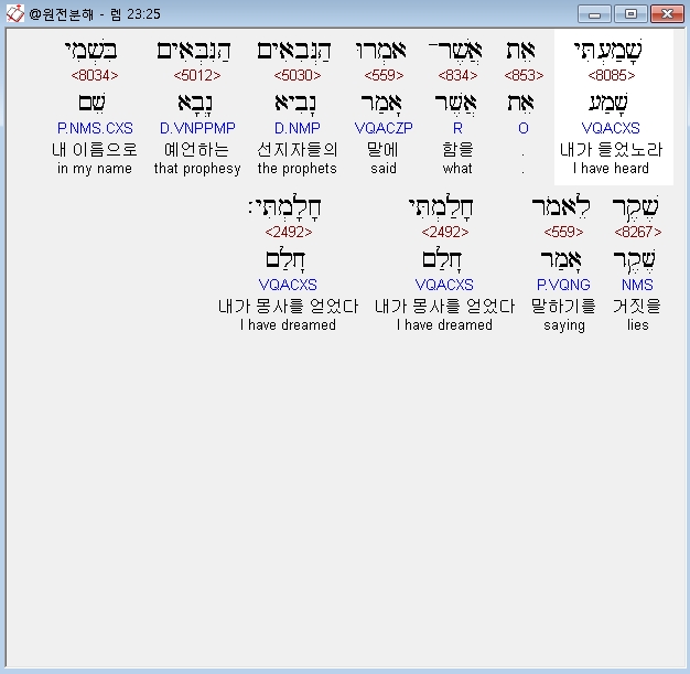 | 히브리어 예레미야 25장 전체 원어 원문 성경 공부 주석 강해 설교 해설 해석 (0) | 2020.10.20 |