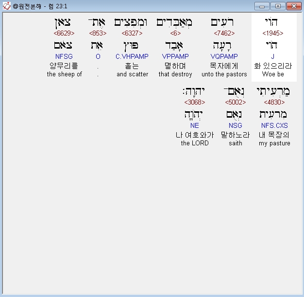 히브리어구약BHS,1 הֹוי רֹעִים מְאַבְּדִים וּמְפִצִים אֶת־צֹאן מַרְעִיתִי נְאֻם־יְהוָה׃