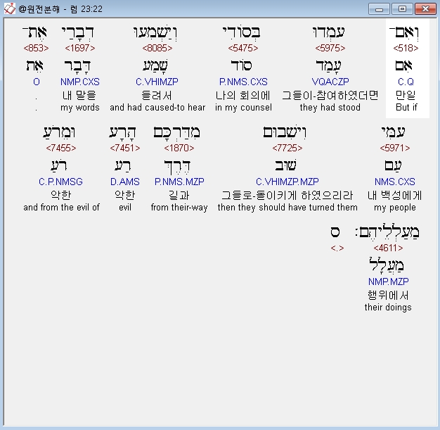 | 히브리어 예레미야 22장 전체 원어 원문 성경 공부 주석 강해 설교 해설 해석 (0) | 2020.10.20 |