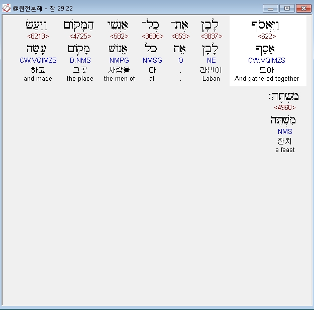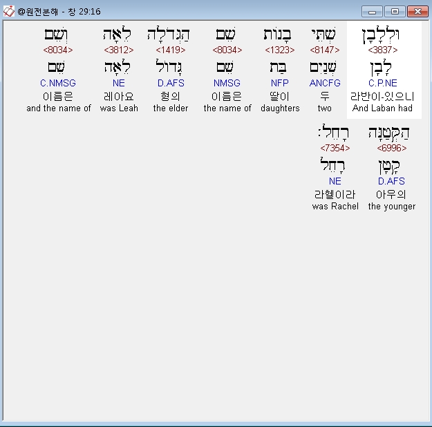 | 히브리어 창세기 30장 전체 원어 원문 성경 공부 주석 강해 설교 해설 해석 (0) | 2020.09.25 |