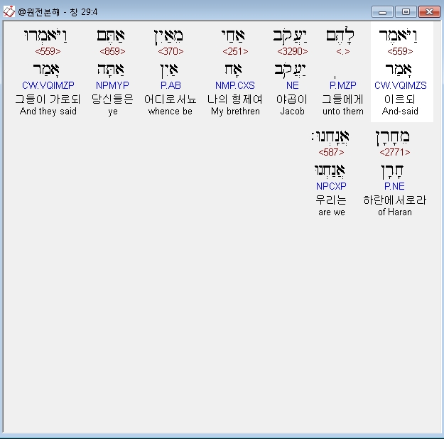 히브리어구약BHS,4 וַיֹּאמֶר לָהֶם יַעֲקֹב אַחַי מֵאַיִן אַתֶּם וַיֹּאמְרוּ מֵחָרָן אֲנָחְנוּ׃