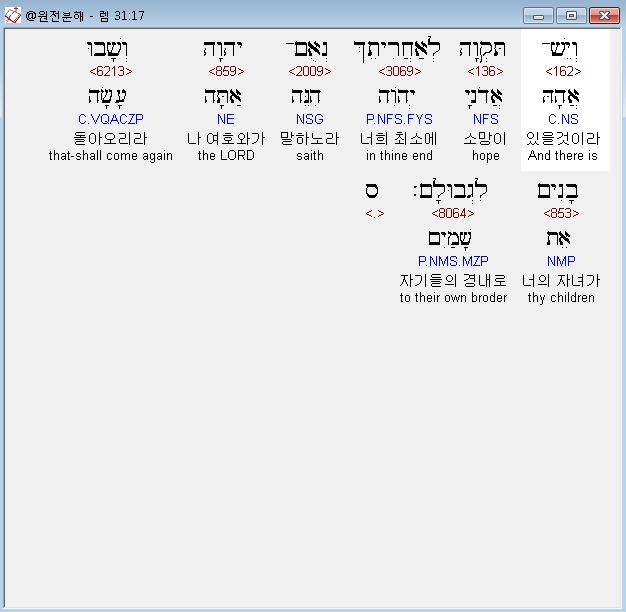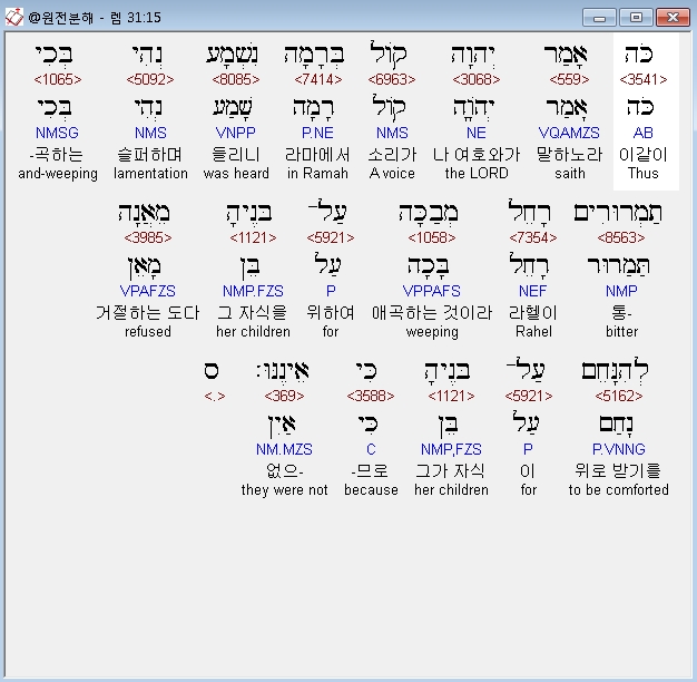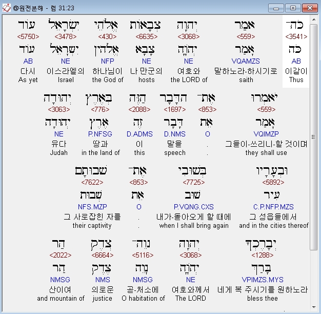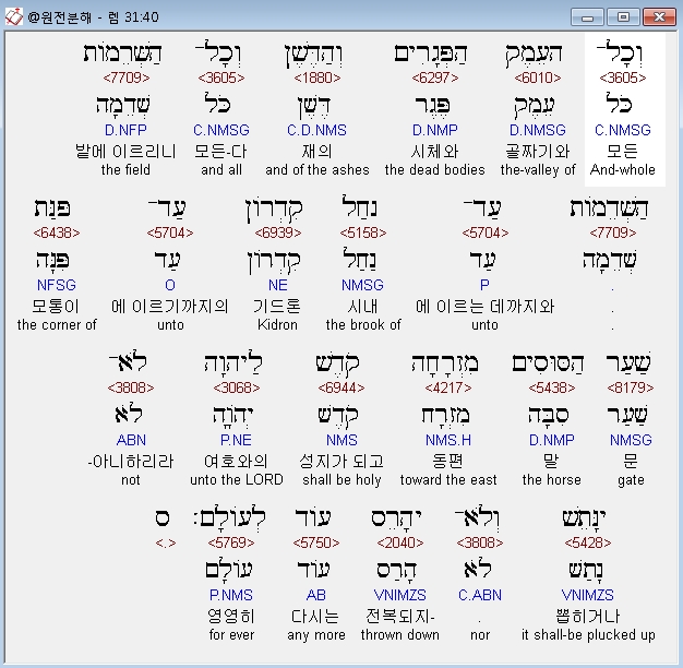 | 히브리어 예레미야 33장 전체 원어 원문 성경 공부 주석 강해 설교 해설 해석 (0) | 2020.10.21 |