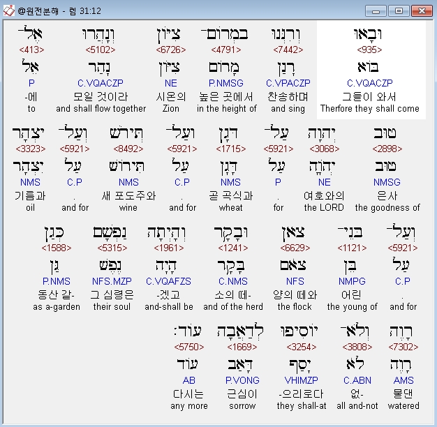 | 히브리어 예레미야 30장 전체 원어 원문 성경 공부 주석 강해 설교 해설 해석 (0) | 2020.10.21 |