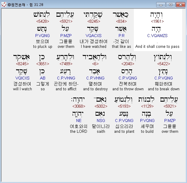 | 히브리어 예레미야 28장 전체 원어 원문 성경 공부 주석 강해 설교 해설 해석 (0) | 2020.10.21 |