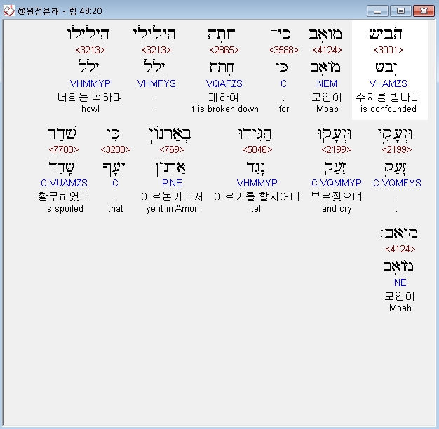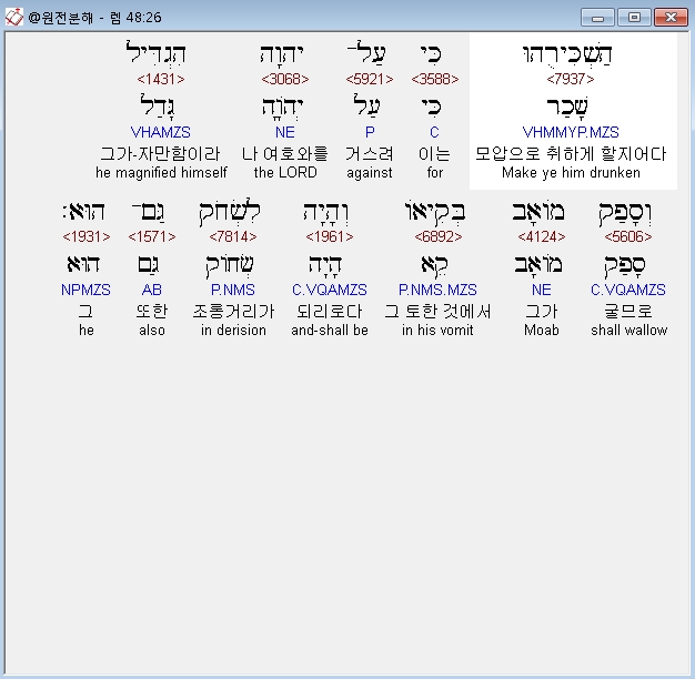 히브리어구약BHS,42 וְנִשְׁמַד מֹואָב מֵעָם כִּי עַל־יְהוָה הִגְדִּיל׃