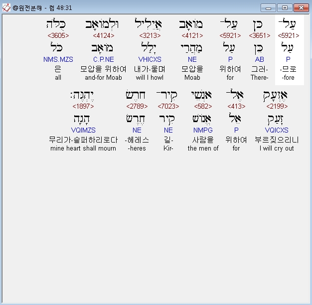 | 히브리어 예레미야 49장 전체 원어 원문 성경 공부 주석 강해 설교 해설 해석 (0) | 2020.10.21 |