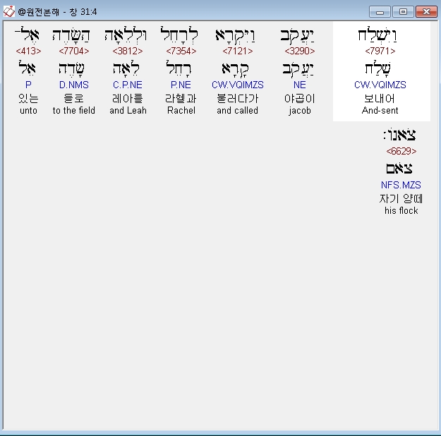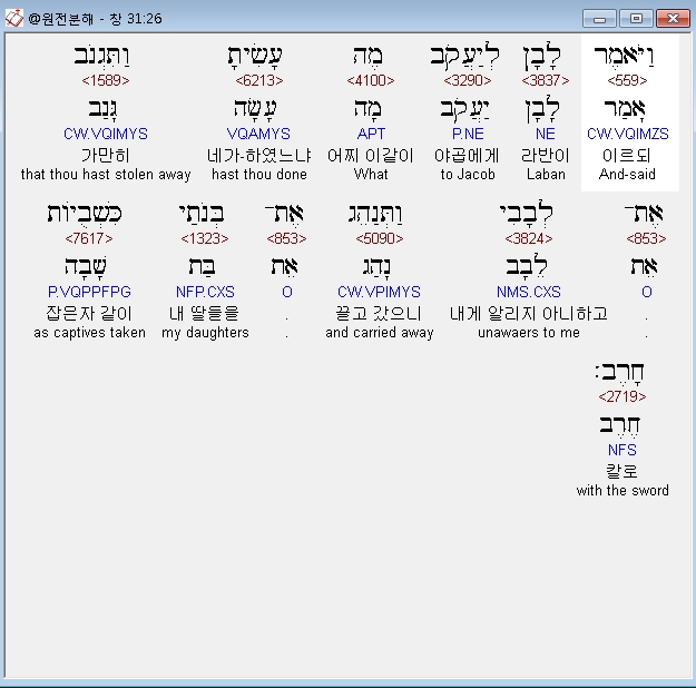 | 히브리어 창세기 29장 전체 원어 원문 성경 공부 주석 강해 설교 해설 해석 (0) | 2020.09.25 |