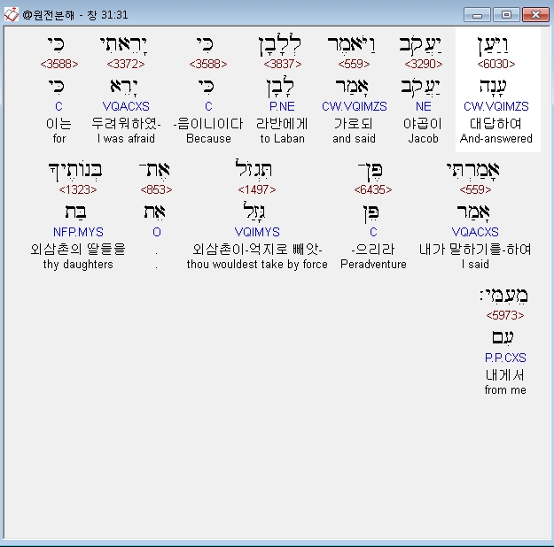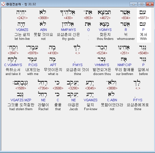 | 히브리어 창세기 32장 전체 원어 원문 성경 공부 주석 강해 설교 해설 해석 (0) | 2020.09.25 |