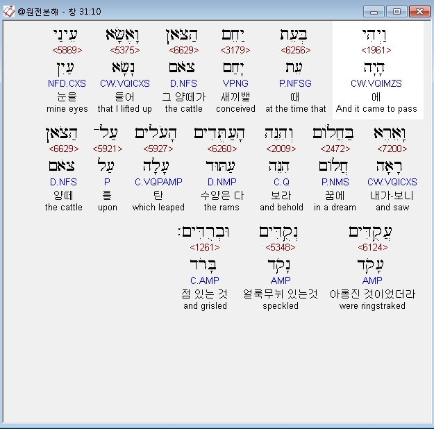 | 히브리어 창세기 30장 전체 원어 원문 성경 공부 주석 강해 설교 해설 해석 (0) | 2020.09.25 |