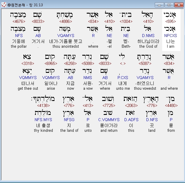 | 히브리어 창세기 28장 전체 원어 원문 성경 공부 주석 강해 설교 해설 해석 (0) | 2020.09.25 |