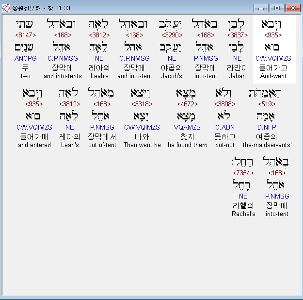 | 히브리어 창세기 33장 전체 원어 원문 성경 공부 주석 강해 설교 해설 해석 (0) | 2020.09.25 |