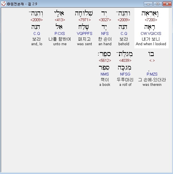 히브리어구약BHS,9 וָאֶרְאֶה וְהִנֵּה־יָד שְׁלוּחָה אֵלָי וְהִנֵּה־בֹו מְגִלַּת־סֵפֶר׃
