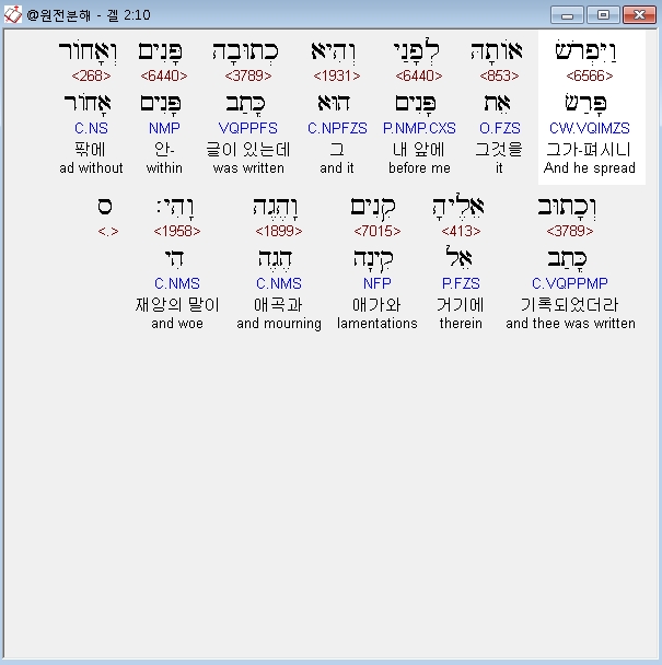 | 히브리어 에스겔 3장 전체 원어 원문 성경 공부 주석 강해 설교 해설 해석 (0) | 2020.10.21 |