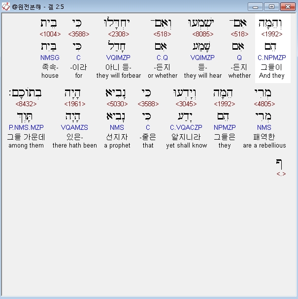 히브리어구약BHS,5 וְהֵמָּה אִם־יִשְׁמְעוּ וְאִם־יֶחְדָּלוּ כִּי בֵּית מְרִי הֵמָּה וְיָדְעוּ כִּי נָבִיא הָיָה בְתֹוכָם׃ ף