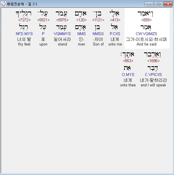 히브리어구약BHS,1 וַיֹּאמֶר אֵלָי בֶּן־אָדָם עֲמֹד עַל־רַגְלֶיךָ וַאֲדַבֵּר אֹתָךְ׃