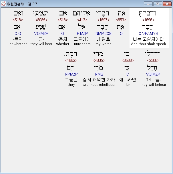 히브리어구약BHS,7 וְדִבַּרְתָּ אֶת־דְּבָרַי אֲלֵיהֶם אִם־יִשְׁמְעוּ וְאִם־יֶחְדָּלוּ כִּי מְרִי הֵמָּה׃ ף