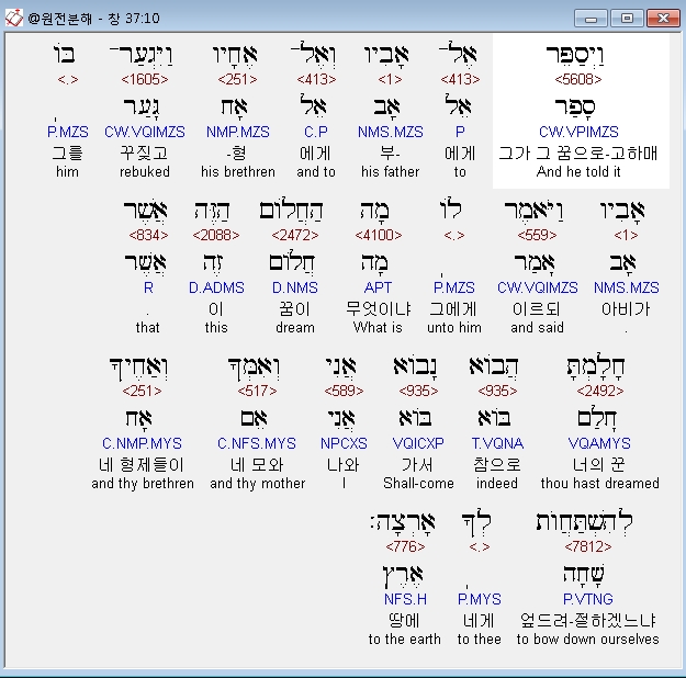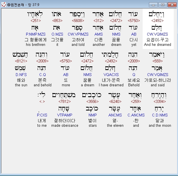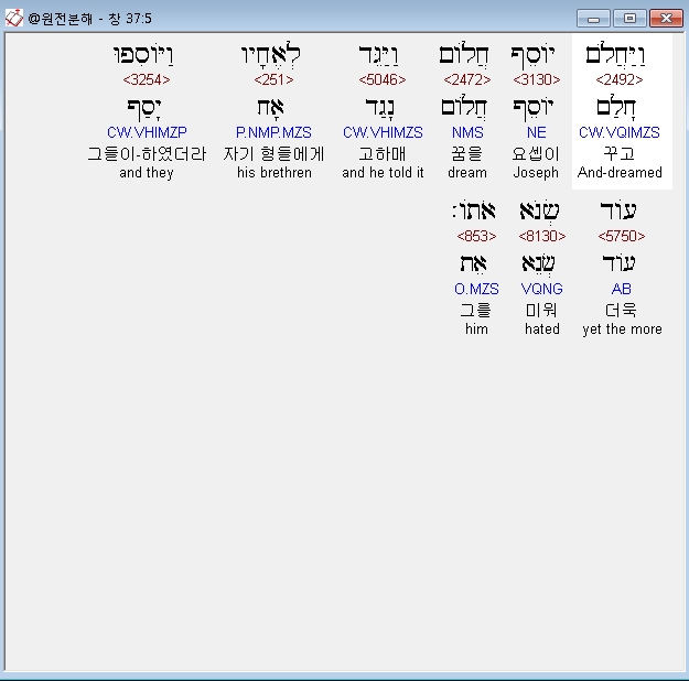 히브리어구약BHS,5 וַיַּחֲלֹם יֹוסֵף חֲלֹום וַיַּגֵּד לְאֶחָיו וַיֹּוסִפוּ עֹוד שְׂנֹא אֹתֹו׃