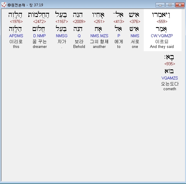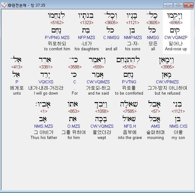 | 히브리어 창세기 35장 전체 원어 원문 성경 공부 주석 강해 설교 해설 해석 (0) | 2020.09.25 |