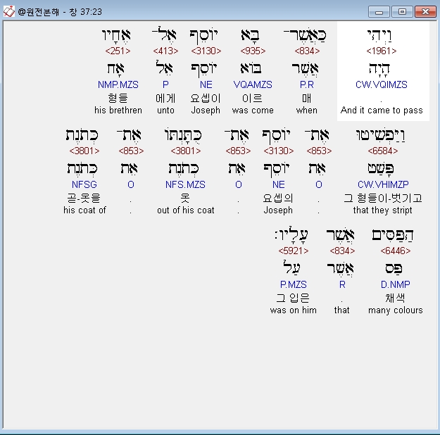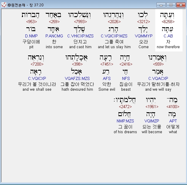 | 히브리어 창세기 38장 전체 원어 원문 성경 공부 주석 강해 설교 해설 해석 (0) | 2020.09.25 |