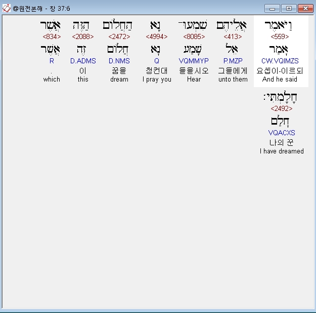 히브리어구약BHS,6 וַיֹּאמֶר אֲלֵיהֶם שִׁמְעוּ־נָא הַחֲלֹום הַזֶּה אֲשֶׁר חָלָמְתִּי׃
