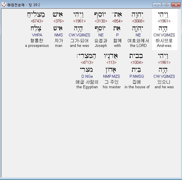 히브리어구약BHS,2 וַיְהִי יְהוָה אֶת־יֹוסֵף וַיְהִי אִישׁ מַצְלִיחַ וַיְהִי בְּבֵית אֲדֹנָיו הַמִּצְרִי׃