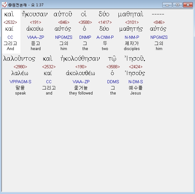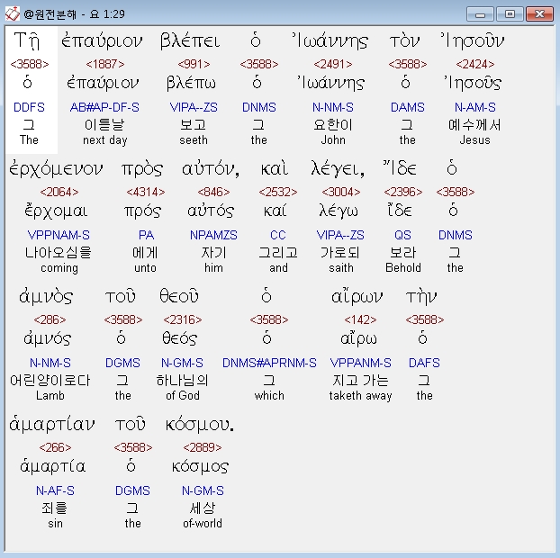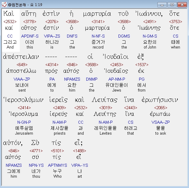 | 헬라어 요한복음 2장 전체 원어 원문 성경 공부 주석 강해 설교 해설 해석 (0) | 2020.10.23 |