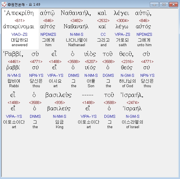 헬라어신약Stephanos,49 απεκριθη ναθαναηλ και λεγει αυτω ραββι συ ει ο υιος του θεου συ ει ο βασιλευς του ισραηλ