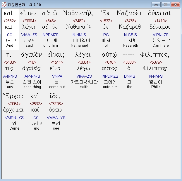 헬라어신약Stephanos,46 και ειπεν αυτω ναθαναηλ εκ ναζαρετ δυναται τι αγαθον ειναι λεγει αυτω φιλιππος ερχου και ιδε