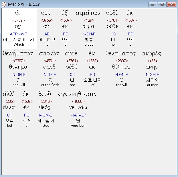 | 헬라어 요한복음 3장 전체 원어 원문 성경 공부 주석 강해 설교 해설 해석 (0) | 2020.10.23 |
