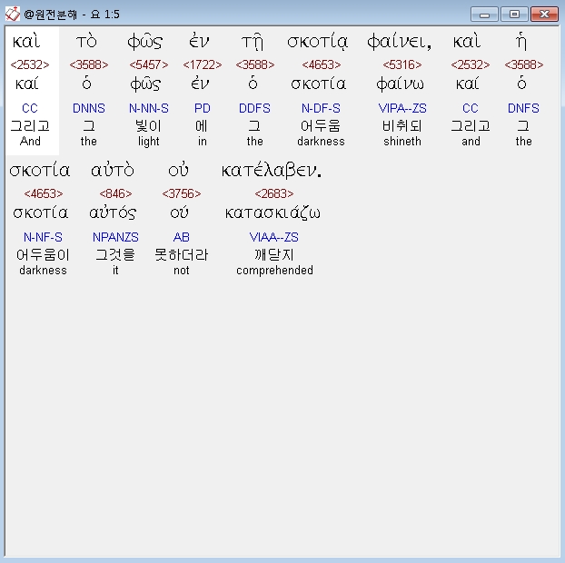 헬라어신약Stephanos,5 και το φως εν τη σκοτια φαινει και η σκοτια αυτο ου κατελαβεν