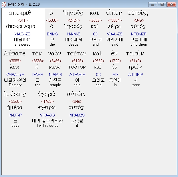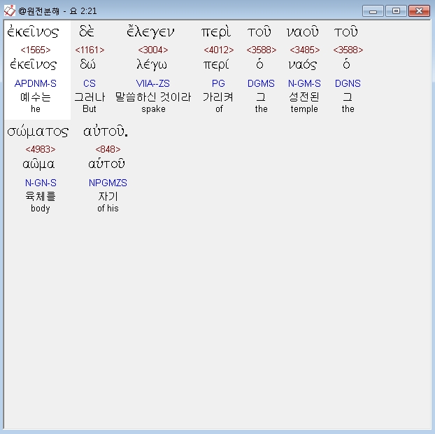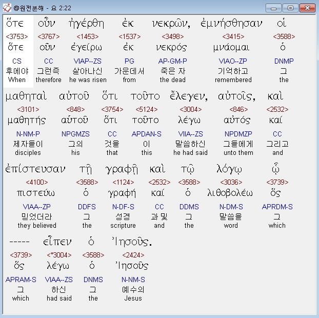 | 헬라어 요한복음 3장 전체 원어 원문 성경 공부 주석 강해 설교 해설 해석 (0) | 2020.10.23 |