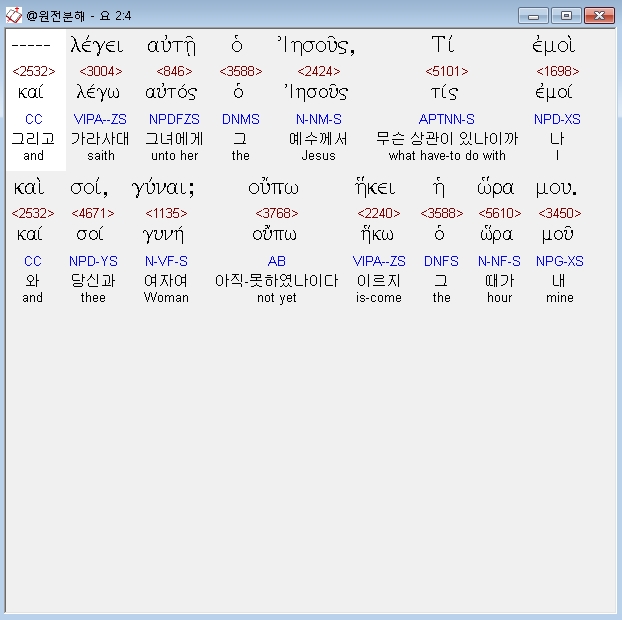 | 헬라어 요한복음 4장 전체 원어 원문 성경 공부 주석 강해 설교 해설 해석 (0) | 2020.10.23 |