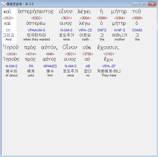 헬라어신약Stephanos,3 και υστερησαντος οινου λεγει η μητηρ του ιησου προς αυτον οινον ουκ εχουσιν