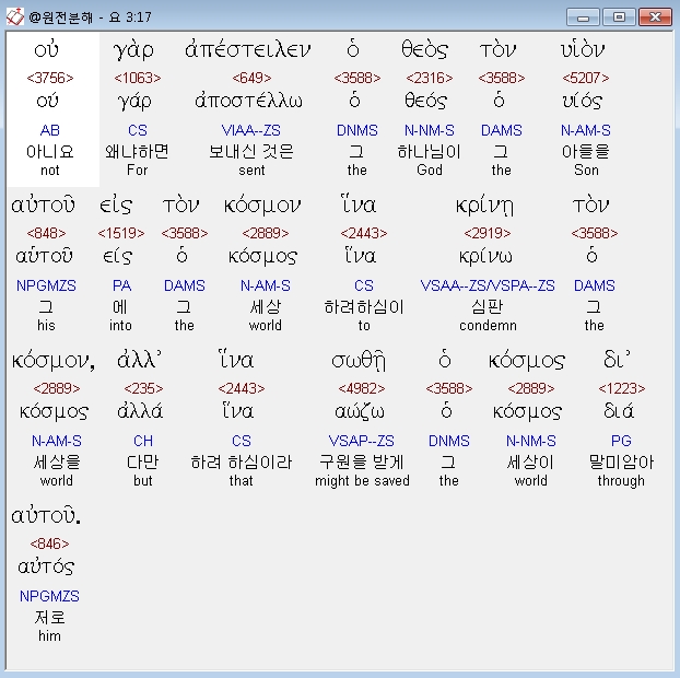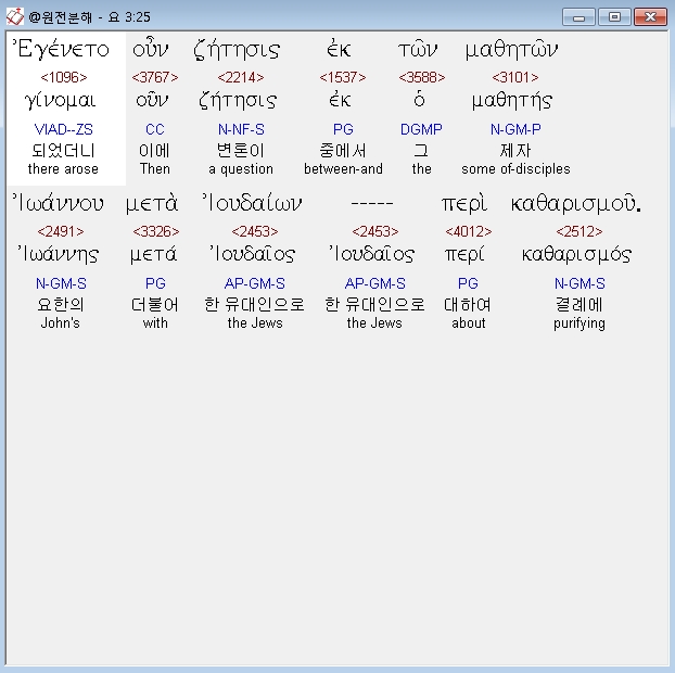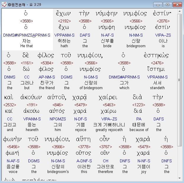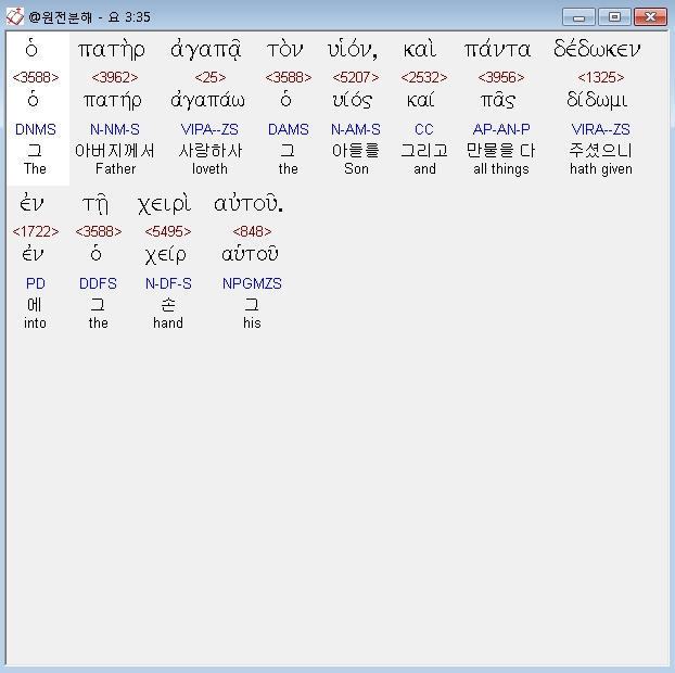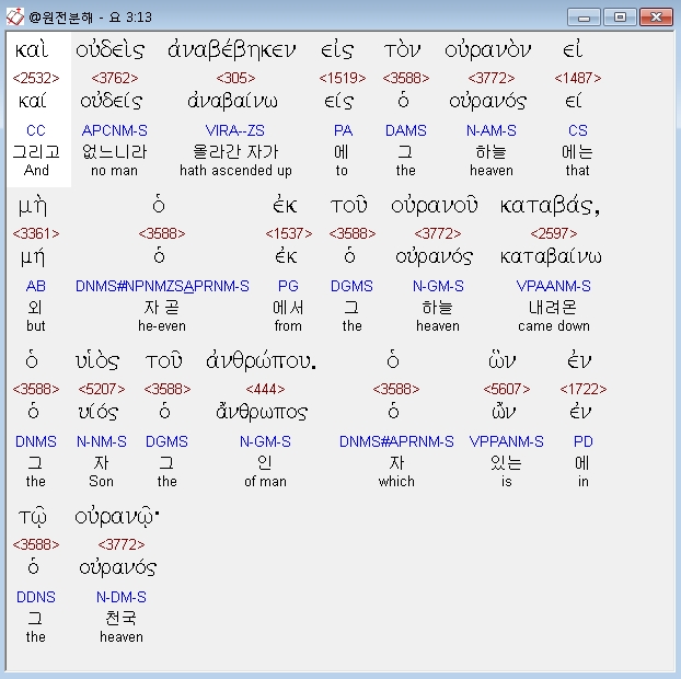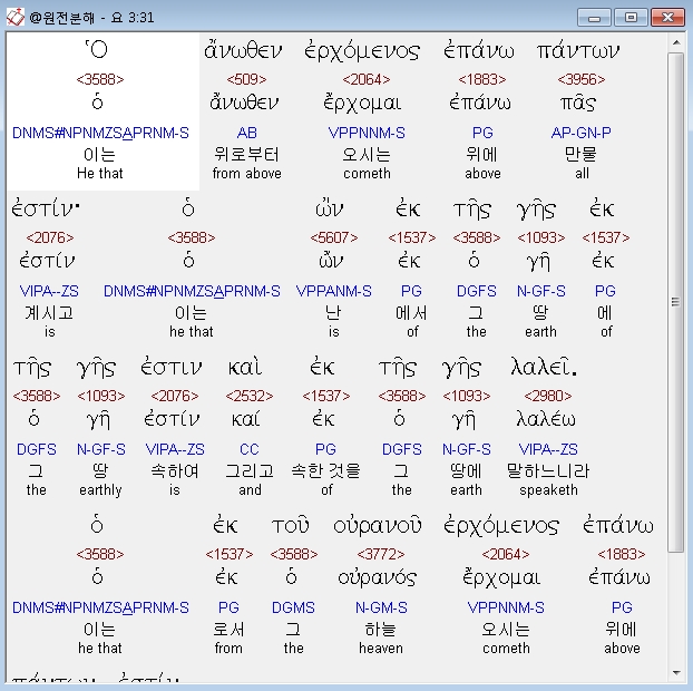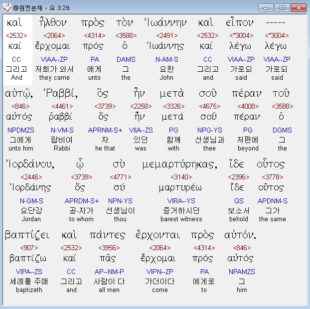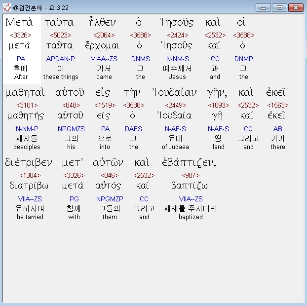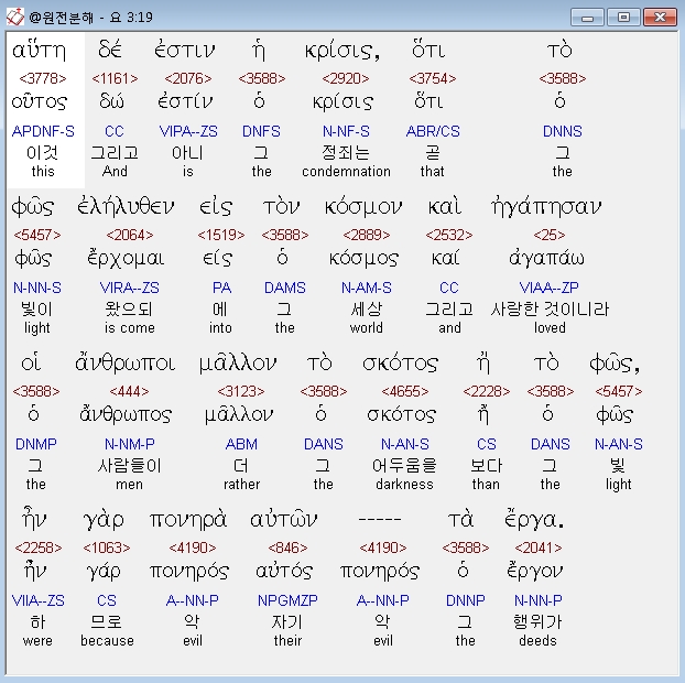 | 헬라어 요한복음 5장 전체 원어 원문 성경 공부 주석 강해 설교 해설 해석 (0) | 2020.10.23 |