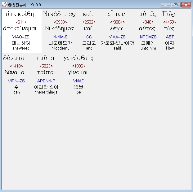 헬라어신약Stephanos,3 απεκριθη ο ιησους και ειπεν αυτω αμην αμην λεγω σοι εαν μη τις γεννηθη ανωθεν ου δυναται ιδειν την βασιλειαν του θεου