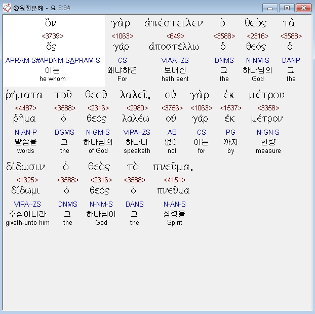 헬라어신약Stephanos,34 ον γαρ απεστειλεν ο θεος τα ρηματα του θεου λαλει ου γαρ εκ μετρου διδωσιν ο θεος το πνευμα