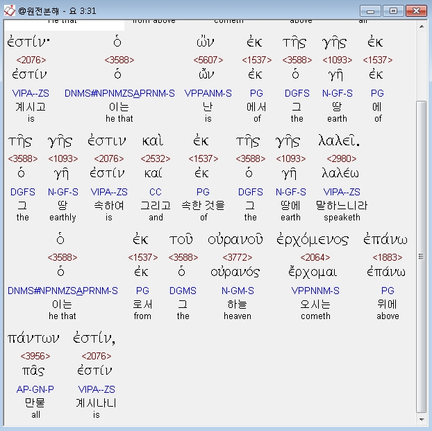 영어NASB,31 "He who comes from above is above all, he who is of the earth is from the earth and speaks of the earth He who comes from heaven is above all.